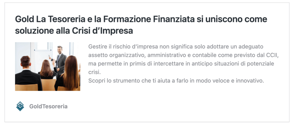 Gold La Tesoreria e la Formazione Finanziata si uniscono come soluzione alla Crisi d’Impresa