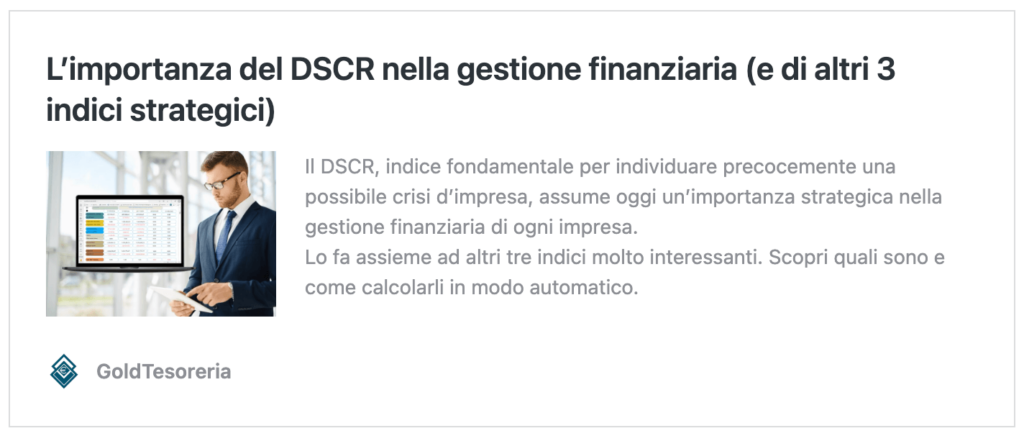 Il DSCR, Debt Service Coverage Ratio, indice fondamentale per individuare precocemente una possibile crisi d’impresa, assume oggi un’importanza strategica nella gestione finanziaria di ogni impresa.
