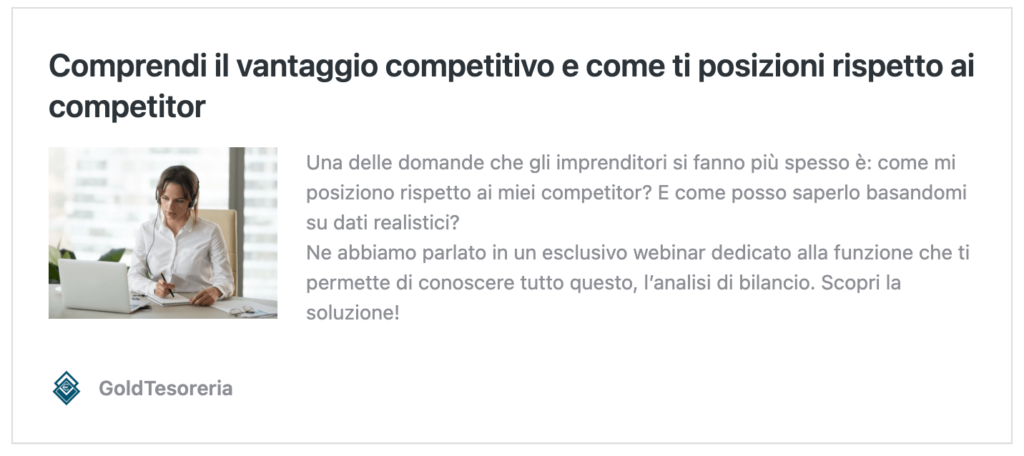 P.S. Questo articolo è dedicato a chi già possiede il software Gold, ma è utilissimo a tutte le persone che vogliono far salire di livello la gestione finanziaria aziendale.